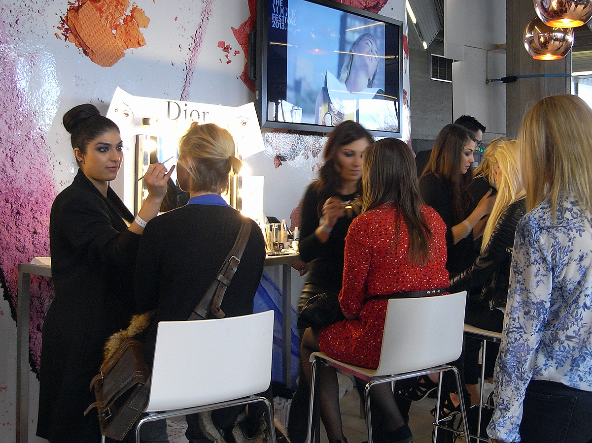 In 2013 the Vogue Festival was held on April 27-28, which should have been very spring-like, but in fact the weather was just freezing. I wanted to turn up to the two-day fashion and beauty fest looking Delevingneishly divine, but I was in layers of wool and leather and denim and all I could do was look around me at wonderment as those gorgeous young things defied the elements to look totally Vogueish. Note lovely girl in watermelon pink dress – I swear it was about eight degrees Celsius outside.